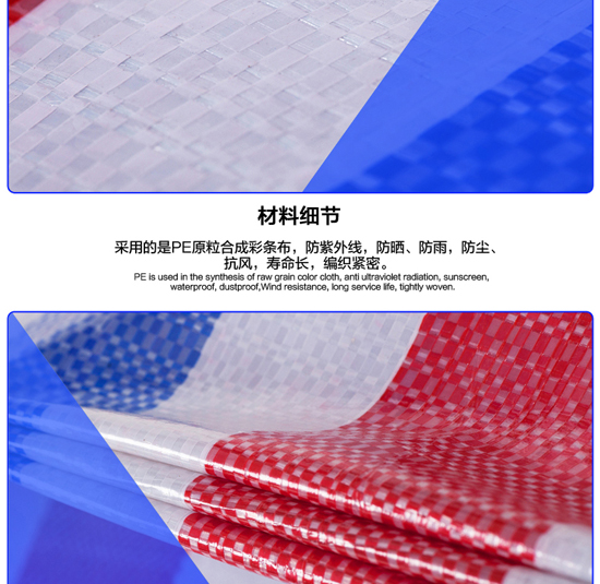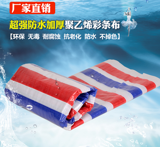 彩条布是篷布的一种,一般分为聚乙烯彩条布和聚丙烯彩条布。通俗的叫法又将其称为:新料彩条布(聚乙烯PE)和旧料彩条布(聚丙烯PP)。
