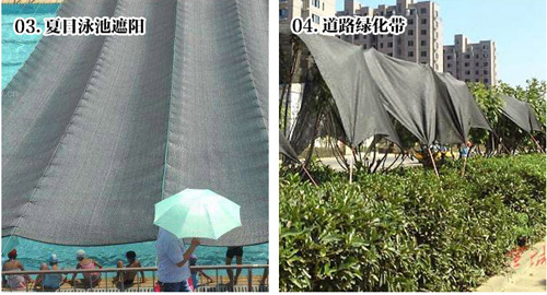 遮阳网主要应用在夏季,尤其是南方推广面积大。有人形容说:北方冬季是一片白(薄膜覆盖),南方夏季是一片黑(覆盖遮阳网)。夏季在南方利用遮阳网栽培蔬菜已成为防灾保护的一项主要推广的技术措施。北方应用还只限于夏季蔬菜育苗。夏季(6—8月)覆盖遮阳网主要作用是防烈日的照射、防暴雨的冲击、高温的危害、的传播,尤其是对阻止虫害迁移起到很好的作用。