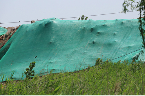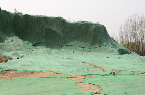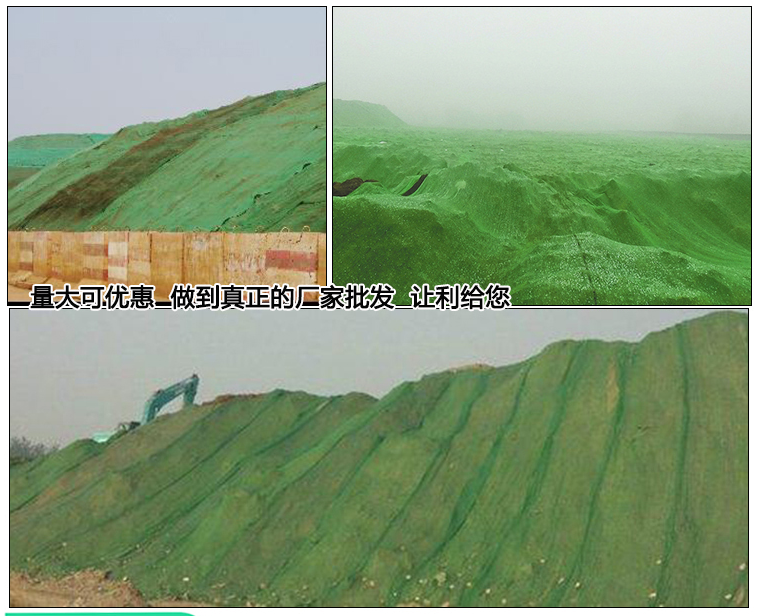盖土网又名“防尘网”、“遮阳盖土网”,是一种管理露天料场扬尘污染管理的环保工程。运用钩编工艺编织。盖土网分为两种,密织的和稀织的。盖土网是以聚乙烯为原料,并参加防老化剂和抗腐蚀等助剂,消融后经拉丝编制而成的轻型,高强度,耐老化的新型网状农用聚乙烯掩盖资料。